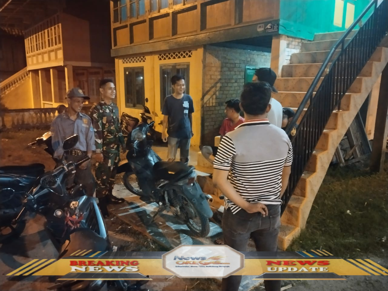 Babinsa Koramil 402-10/Kayuagung bersama warga Kelurahan Kedaton bersiap melaksanakan patroli siskamling demi menjaga Kamtibmas, Kamis malam (16/10/2025)./Lisin, www.newsokegas.com