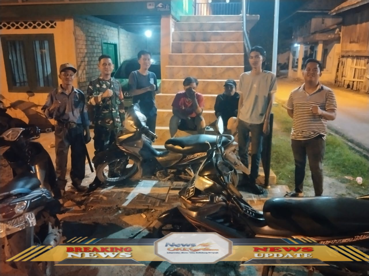 Babinsa Koramil 402-10/Kayuagung bersama warga Kelurahan Kedaton bersiap melaksanakan patroli siskamling demi menjaga Kamtibmas, Kamis malam (16/10/2025)./Lisin, www.newsokegas.com