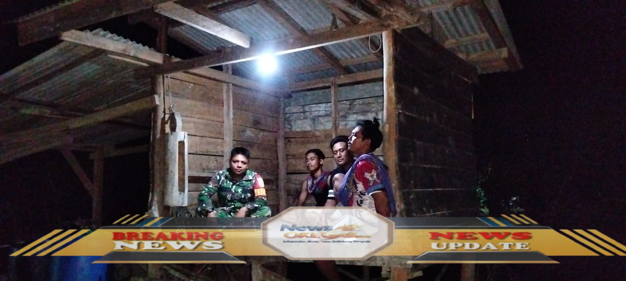 Kopda Rudiansyah, Babinsa Koramil 402-13/Sungai Menang, bersama warga Desa Sri Gading aktif dalam Siskamling demi keamanan lingkungan./Lisin, www.newsokegas.com