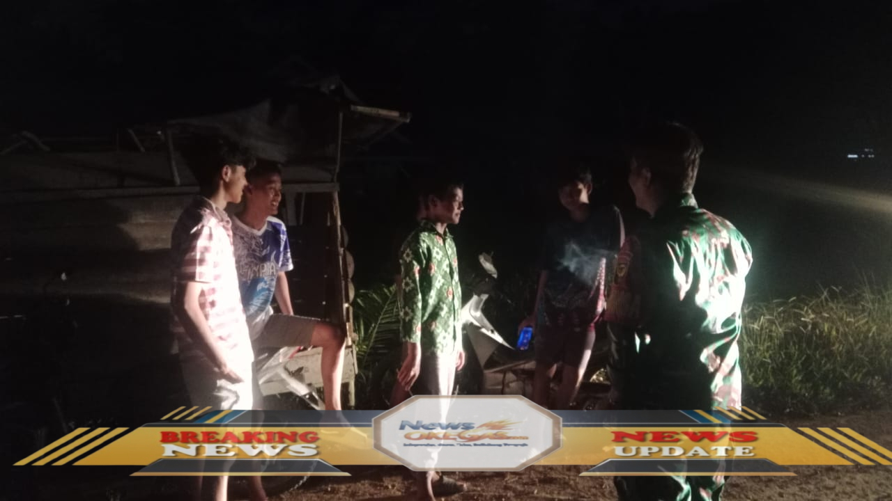 Suasana keakraban Babinsa Koramil 402-11/Tulung Selapan saat berinteraksi dengan para pemuda di Desa Parit Raya dalam patroli malam, Rabu (8/10/2025)./Lisin, www.newsokegas.com
