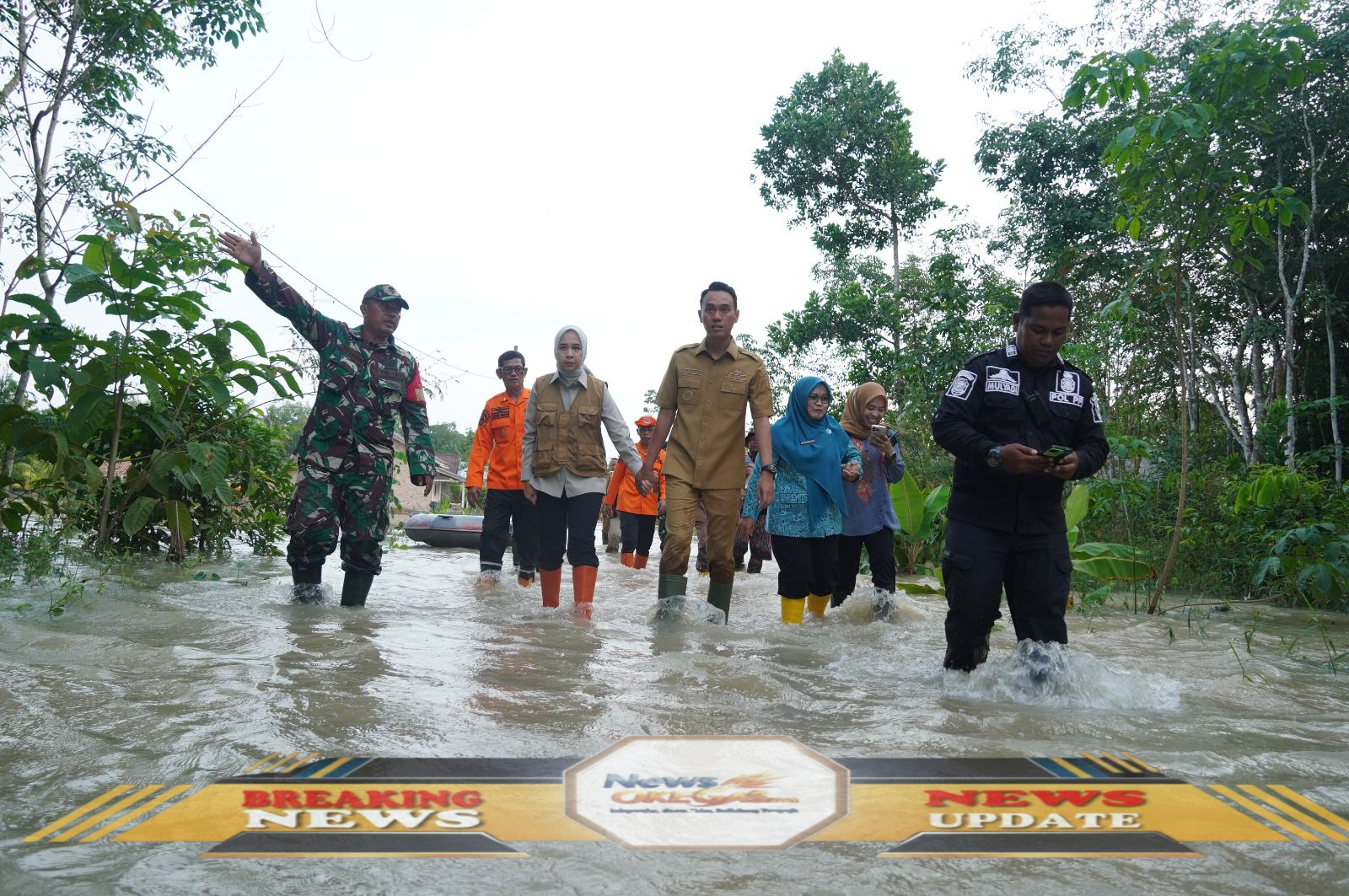 Bupati Kabupaten Ogan Komering Ilir (OKI) H. Muchendi Mahzareki, SE., M.Si., bersama Ketua Dekranasda sekaligus Ketua TP PKK Kabupaten OKI Ny. Hj. Ike Meilina Muchendi, SE., M.Si., serta Ketua GOW OKI Ny. Diyem Wahyuni Supriyanto, melakukan tinjauan langsung lokasi terdampak banjir di wilayah OKI. Didampingi petugas TNI, Polri, dan unsur terkait, mereka menyeberangi lahan tergenang untuk mengevaluasi kondisi masyarakat dan memastikan penanganan serta bantuan penanggulangan bencana berjalan sesuai target guna mendukung pemulihan pascabanjir.|Lisin, News Oke Gas