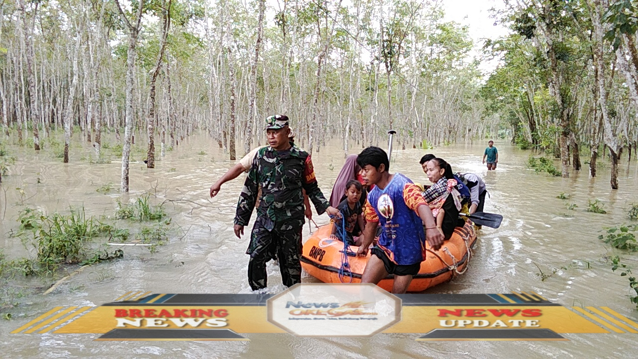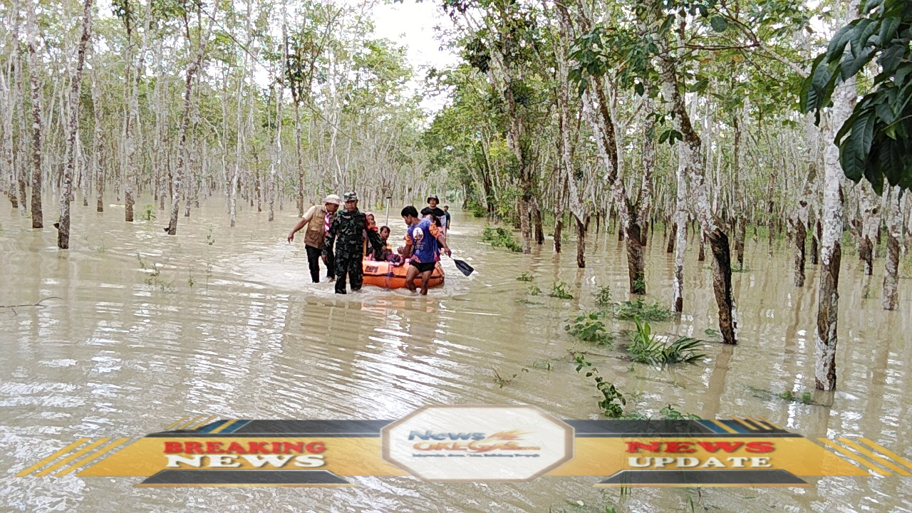 Pada operasi lapangan, Babinsa Koramil 402-10/Kayuagung Sertu Sriyono langsung melakukan evakuasi terhadap masyarakat yang terjebak di dalam rumahnya di Desa Suka Pulih.