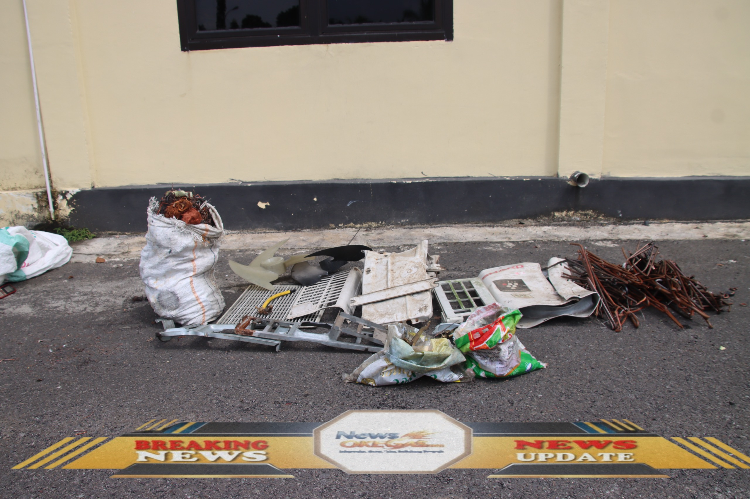 Barang bukti kasus pencurian AC yang berhasil diamankan Tim Gabungan Polres Ogan Komering Ilir pada Rabu (07/01/2026). Bukti tersebut mencakup alat pemecah seperti kunci PASS, tang besi, palu besi, serta sisa komponen AC, besi baja, dan barang hasil curian lainnya dari 7 lokasi TKP di wilayah Kabupaten OKI, antara lain RSUD Kayuagung, Cafe Seroja, dan sekitar pintu tol.|Lisin, News Oke Gas