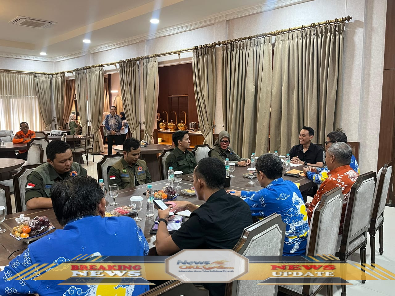 Bupati Kabupaten Ogan Komering Ilir (OKI) H. Muchendi Mahzareki, SE., M.Si bersama jajaran pemerintah daerah dan tim dari BNPB menggelar rapat koordinasi terkait penanganan dan pemulihan pascabanjir tahun 2026. Dalam pertemuan tersebut, pihaknya membahas strategi penyebaran bantuan logistik serta langkah-langkah pemulihan ekonomi bagi masyarakat terdampak di wilayah OKI.|Lisin, News Oke Gas