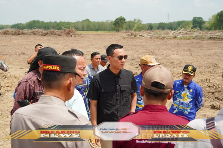 Bupati OKI, H. Muchendi Mahzareki, turun langsung meninjau lahan cetak sawah di Desa Cahya Bumi dan proses perbaikan jalan di Desa Cahya Maju, Kecamatan Lempuing, pada Kamis (18/9/2025).