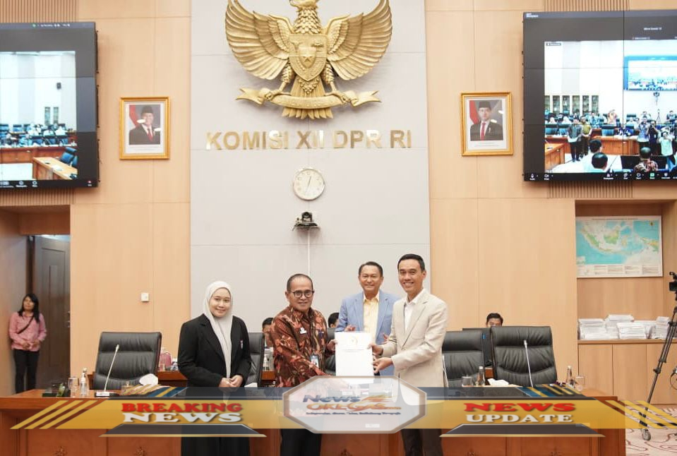 Bupati OKI, H. Muchendi, menyerahkan aspirasi masyarakat terkait masalah energi kepada Komisi XII DPR RI dalam RDP di Senayan, Jakarta, Senin (24/11). Perjuangan untuk akses BBM bersubsidi bagi nelayan, pembangunan SPBN, percepatan jargas, dan solusi antrean solar menjadi fokus utama./Lisin, www.newsokegas.com
