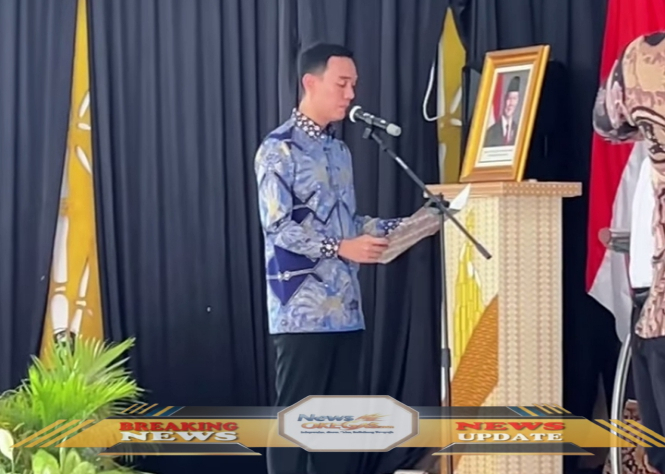 Bupati Muchendi Mahzareki memberikan sambutan dalam acara pelantikan pengurus Green Generation OKI periode 2025-2026, menegaskan komitmen pemerintah daerah dalam mendukung gerakan pelestarian lingkungan yang dipelopori generasi muda./Lisin, www.newsokegas.com