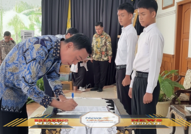 Bupati Muchendi Mahzareki menandatangani surat keputusan pelantikan pengurus Green Generation OKI, sebagai bentuk dukungan nyata pemerintah daerah terhadap gerakan lingkungan yang digagas oleh generasi muda./Lisin, www.newsokegas.com