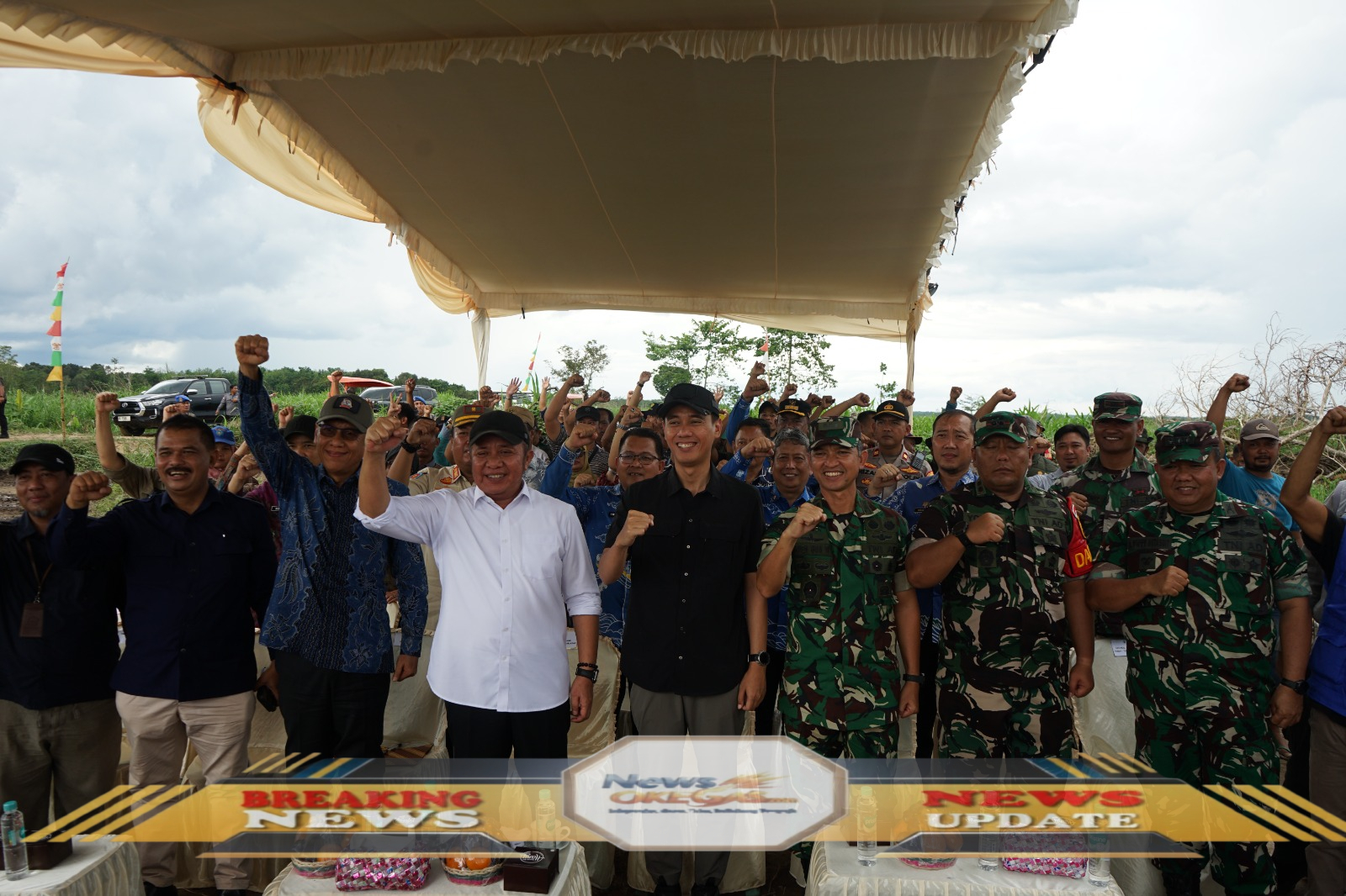 Gubernur Herman Deru didampingi oleh Bupati OKI H. Muchendi Mahzareki, Tenaga Ahli Menteri Bidang Produktivitas Pangan Brigjen TNI Ade Prasetya Nurdin, Kepala Staf Korem (Kasrem) 044/Gapo Kolonel Inf Andi Guswulandri, Kasiter Korem 044/Gapo Kolonel Yoppy Chandra, dan Komandan Kodim (Dandim) 0402/OKI Letkol Inf Yontri Bhakti.