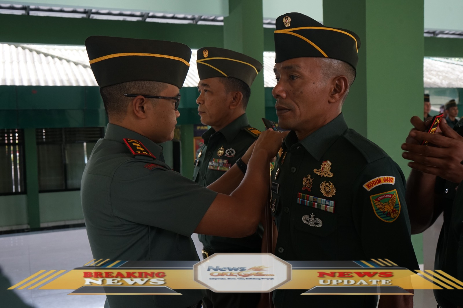 Dandim 0402/OKI-OI, Letkol Inf Gunawan Wibisono, S.H., menyampaikan apresiasi kepada para pejabat lama atas dedikasi dan loyalitas yang telah ditunjukkan selama menjabat.