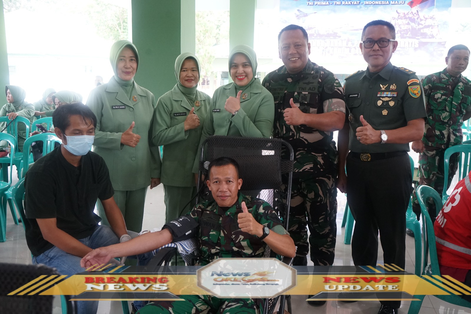 Mayor CKE Jauhari (Kasdim 0402/OKI-OI) berdiskusi dengan tim medis dan peserta donor darah, memastikan kegiatan berjalan sukses dan bermanfaat bagi masyarakat./Lisin, www.newsokegas.com