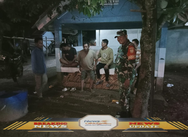 Babinsa bersama warga Desa Penyandingan siaga menjaga keamanan lingkungan.|Lisin, News Oke Gas