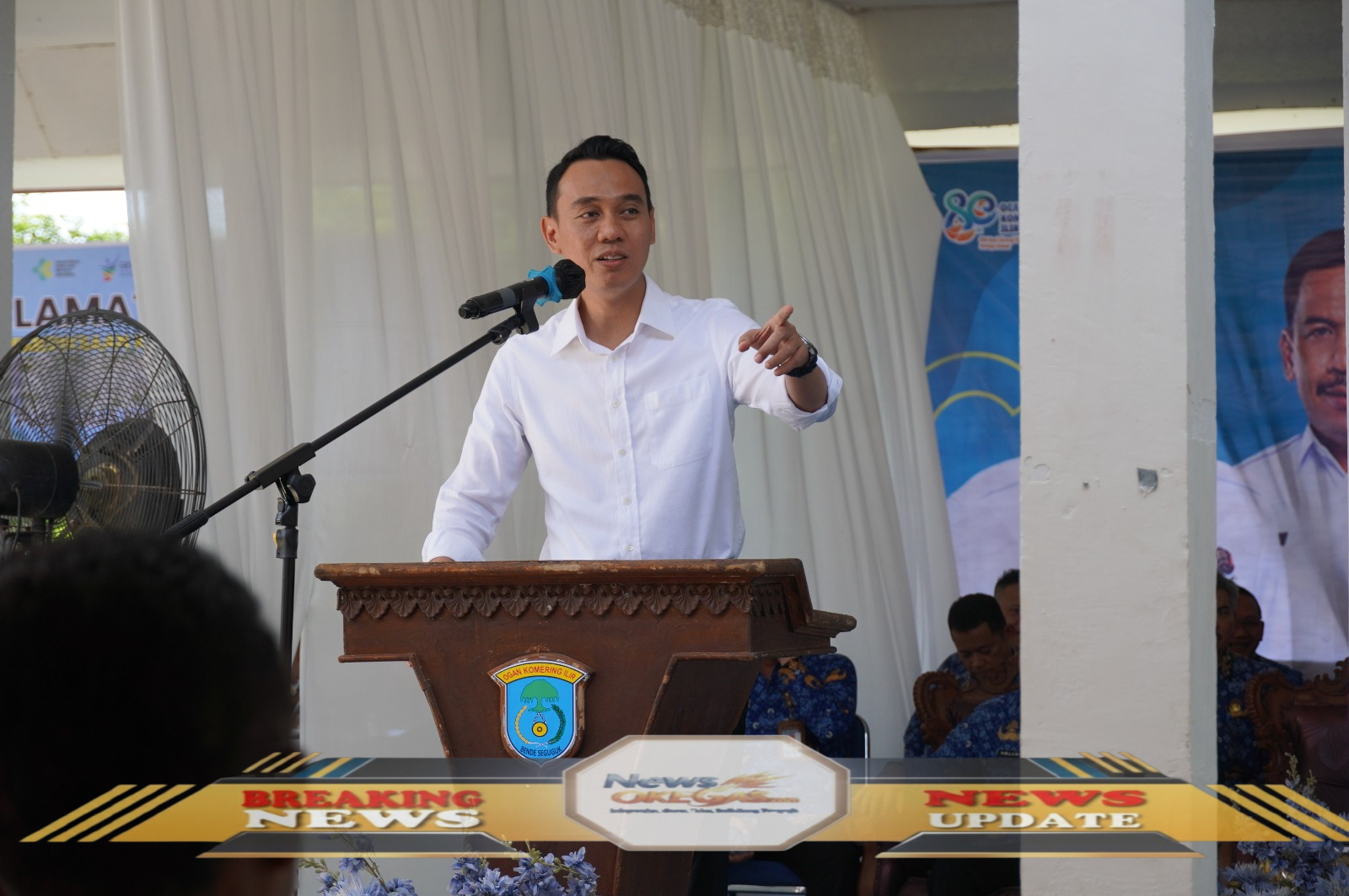 Bupati Kabupaten Ogan Komering Ilir (OKI) H. Muchendi Mahzareki menyampaikan paparan terkait program pembangunan dan pelayanan publik kepada masyarakat dalam sebuah acara di wilayah kabupaten, Kamis (17/12/2025). Dalam pidatonya, beliau menegaskan komitmen pemerintahan untuk terus meningkatkan infrastruktur dan kualitas layanan yang berdampak nyata bagi kesejahteraan warga OKI./Lisin, News Oke Gas