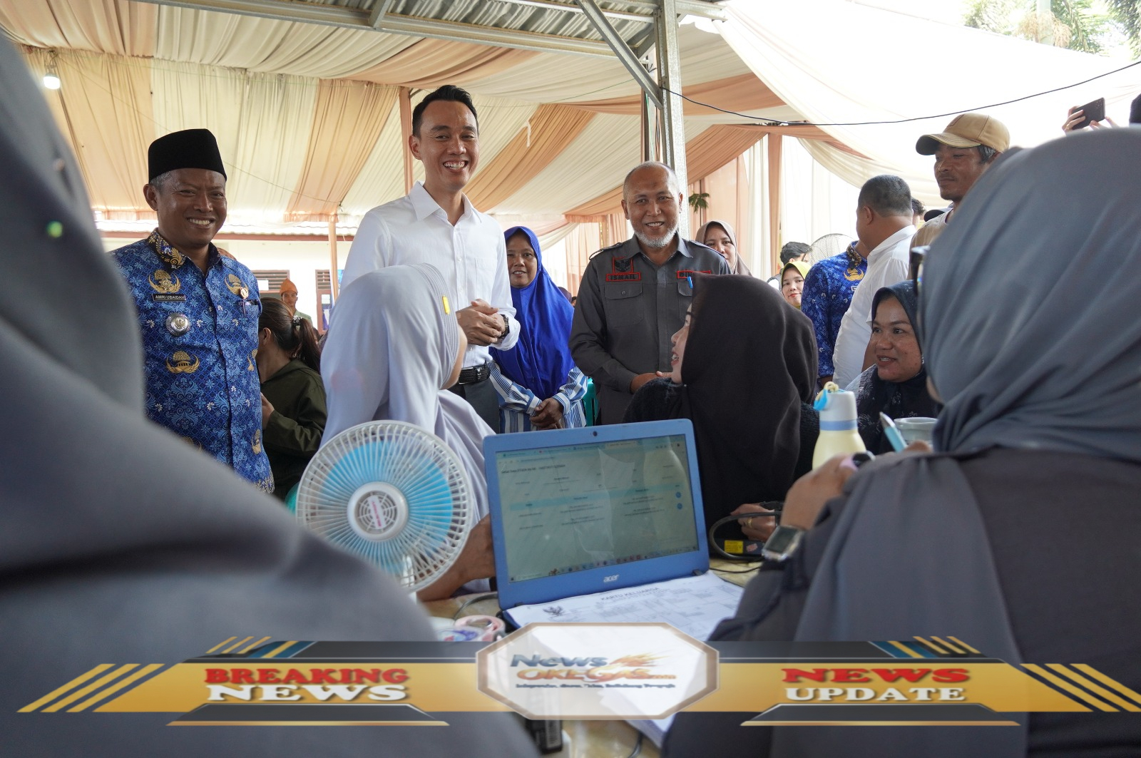 Bupati Kabupaten Ogan Komering Ilir (OKI) H. Muchendi Mahzareki secara langsung menyapa dan memantau pelaksanaan layanan terpadu "Lentera Desa" yang memberikan kemudahan bagi masyarakat dalam mengurus berbagai administrasi seperti kepesertaan BPJS Kesehatan dan pembuatan dokumen penting. Acara yang diadakan di bawah tenda tersebut menunjukkan komitmen pemerintahan untuk menghadirkan pelayanan publik yang lebih dekat dan mudah diakses oleh seluruh lapisan warga OKI./Lisin, News Oke Gas
