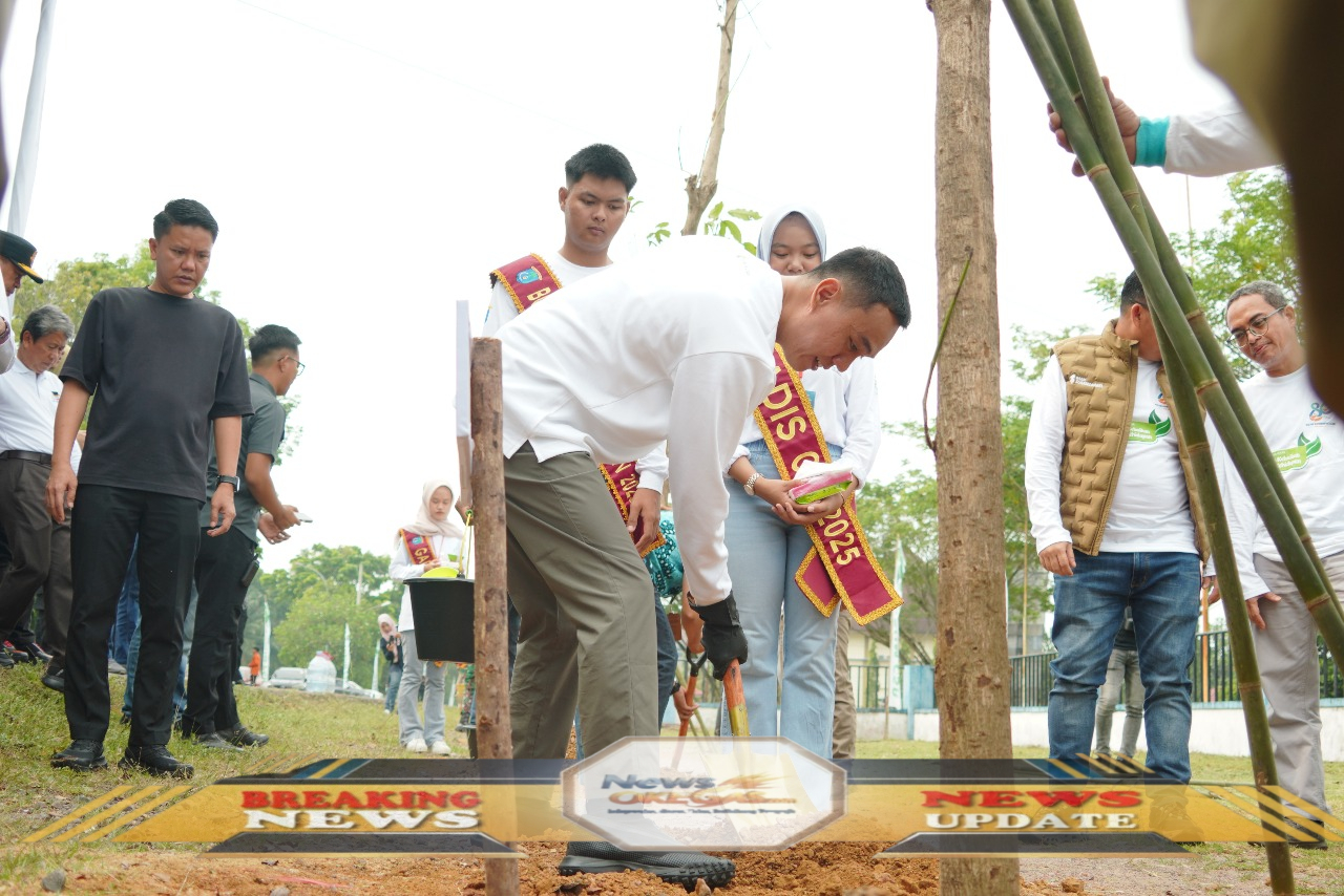 Penanaman simbolis yang berlangsung di depan GOR Perahu Kajang Kayuagung pada Jumat (10/10/2025) ini, dihadiri langsung oleh Bupati OKI H. Muchendi Mahzareki, jajaran Forkopimda, pelajar, dan masyarakat setempat.