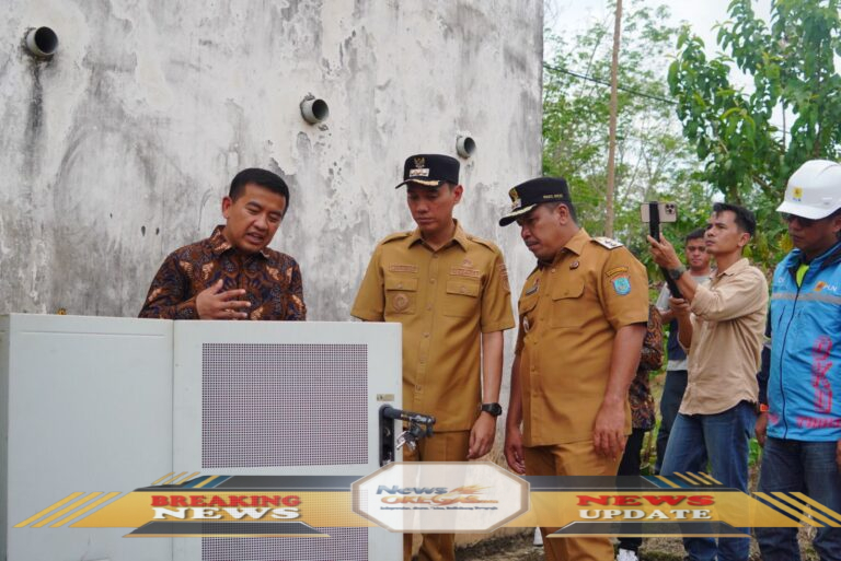 Bupati OKI H. Muchendi Mahzareki, SE., M.Si., didampingi Wakil Bupati OKI Supriyanto, SH., dan General Manager Telkomsel Regional Network and Productivity Sumbagsel, Wawan Kuswandono, meninjau gardu listrik baru yang mendukung program ‘Internet Gotong Royong dan Listrik Handal’./Lisin, www.newsokegas.com