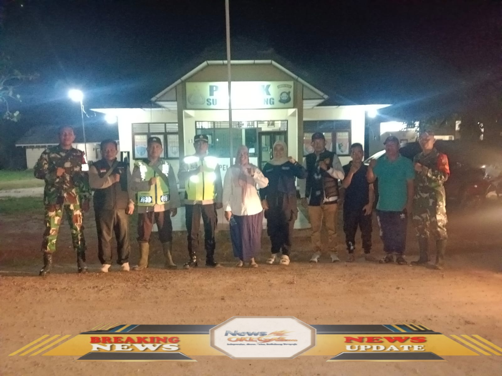 Kumpulan semangat gotong royong Babinsa, Bhabinkamtibmas, dan warga Desa Sungai Menang setelah patroli siskamling malam – menjaga keamanan bersama di awal tahun 2026, di depan Poskamling setempat. 💪|Lisin, News Oke Gas