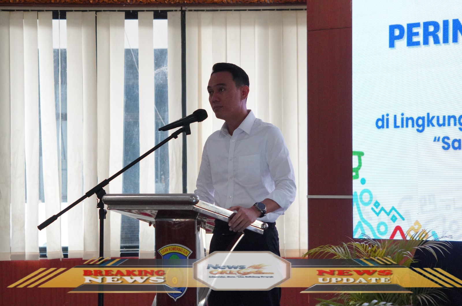 BUPATI OKI H. MUCHENDI MAHZAREKI, SE., M.SI. NYATAKAN KOMITMEN MEMBANGUN PEMERINTAHAN BERSIH Bupati Kabupaten Ogan Komering Ilir (OKI) H. Muchendi Mahzareki, SE., M.Si. saat menyampaikan pidato pada acara Puncak Hakordia di Ruang Rapat Bende Seguguk II Kantor Bupati OKI, Selasa (9/12/2025). Dalam kesempatan tersebut, beliau menegaskan bahwa capaian nilai Monitoring Centre for Prevention (MCP) sebesar 81.5 bukan sekadar prestasi angka, melainkan bukti kerja sama kolaboratif untuk menjamin tata kelola pemerintahan berjalan transparan dan akuntabel, dengan target utama mewujudkan pemerintahan yang benar-benar bersih dan bebas dari praktik korupsi./Lisin, www.newsokegas.com