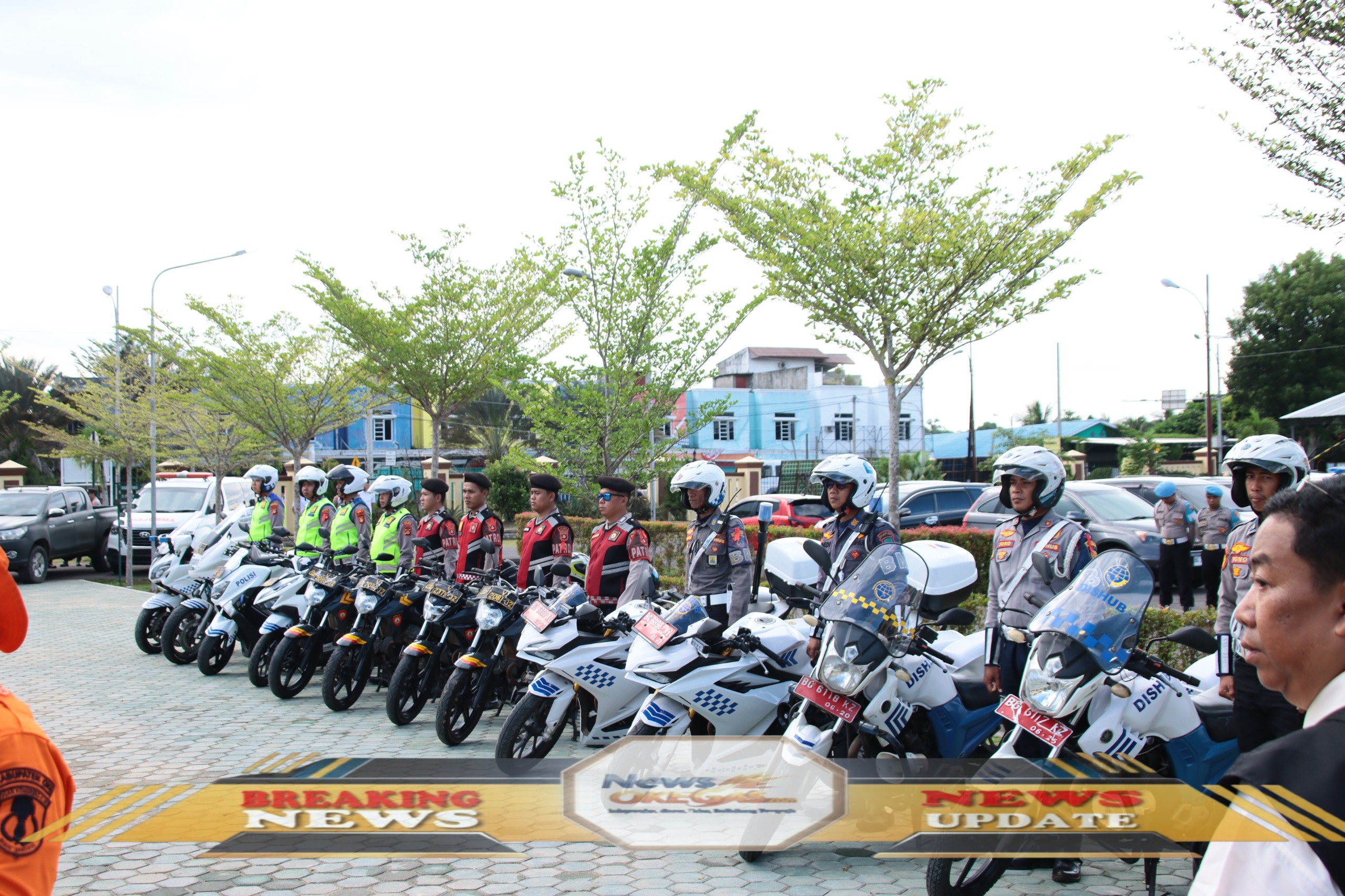 Personel siap sedia dengan sejumlah motor patroli dalam rangka mendukung Operasi Lilin Musi 2025, menjamin keamanan dan ketertiban selama perayaan Natal 2025 dan Tahun Baru 2026 di Kabupaten Ogan Komering Ilir (OKI)./Lisin, News Oke Gas