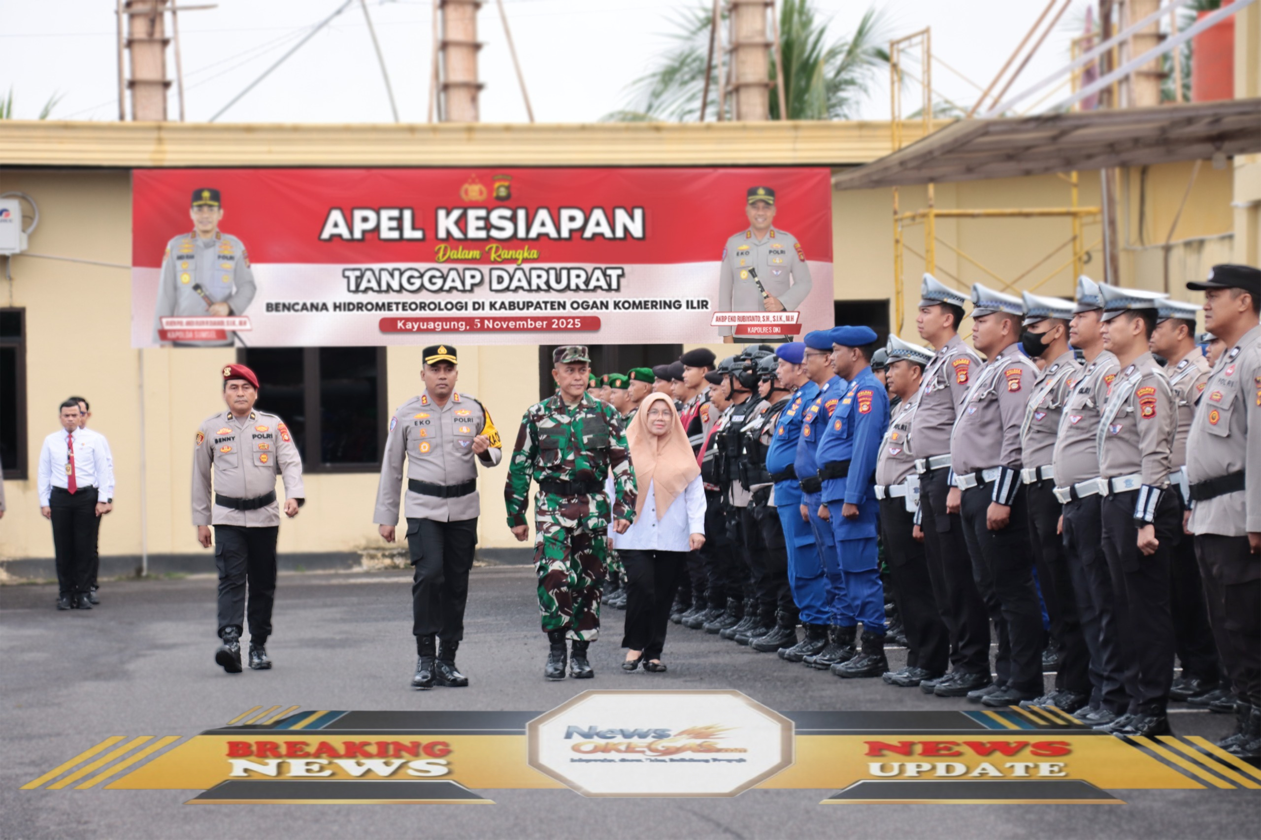 Apel Kesiapsiagaan Tanggap Darurat Bencana Hidrometeorologi di Kayuagung, OKI, 5 November 2025, menunjukkan sinergitas Polri, TNI, dan instansi terkait dalam menghadapi ancaman bencana./Lisin, www.newsokegas.com