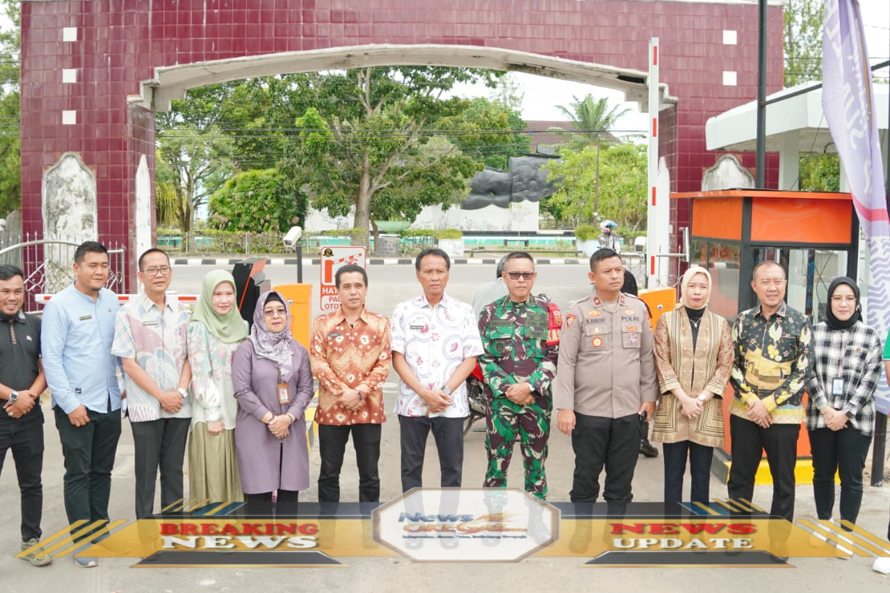 Sekda OKI, Kadis Kesehatan, Asisten III, dan jajaran berfoto bersama dalam peluncuran E-Parking dan layanan deteksi dini kanker serviks di RSUD Kayuagung. Komitmen bersama untuk pelayanan kesehatan yang lebih baik!/Lisin, www.newsokegas.com 🤝🏥
