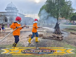 Sekretaris Manggala Agni OKI, Muhammad juga menjelaskan pentingnya APD (Alat Pelindung Diri) saat memadamkan api. Simulasi pemadaman api dilakukan menggunakan mesin robin dan tangki air.