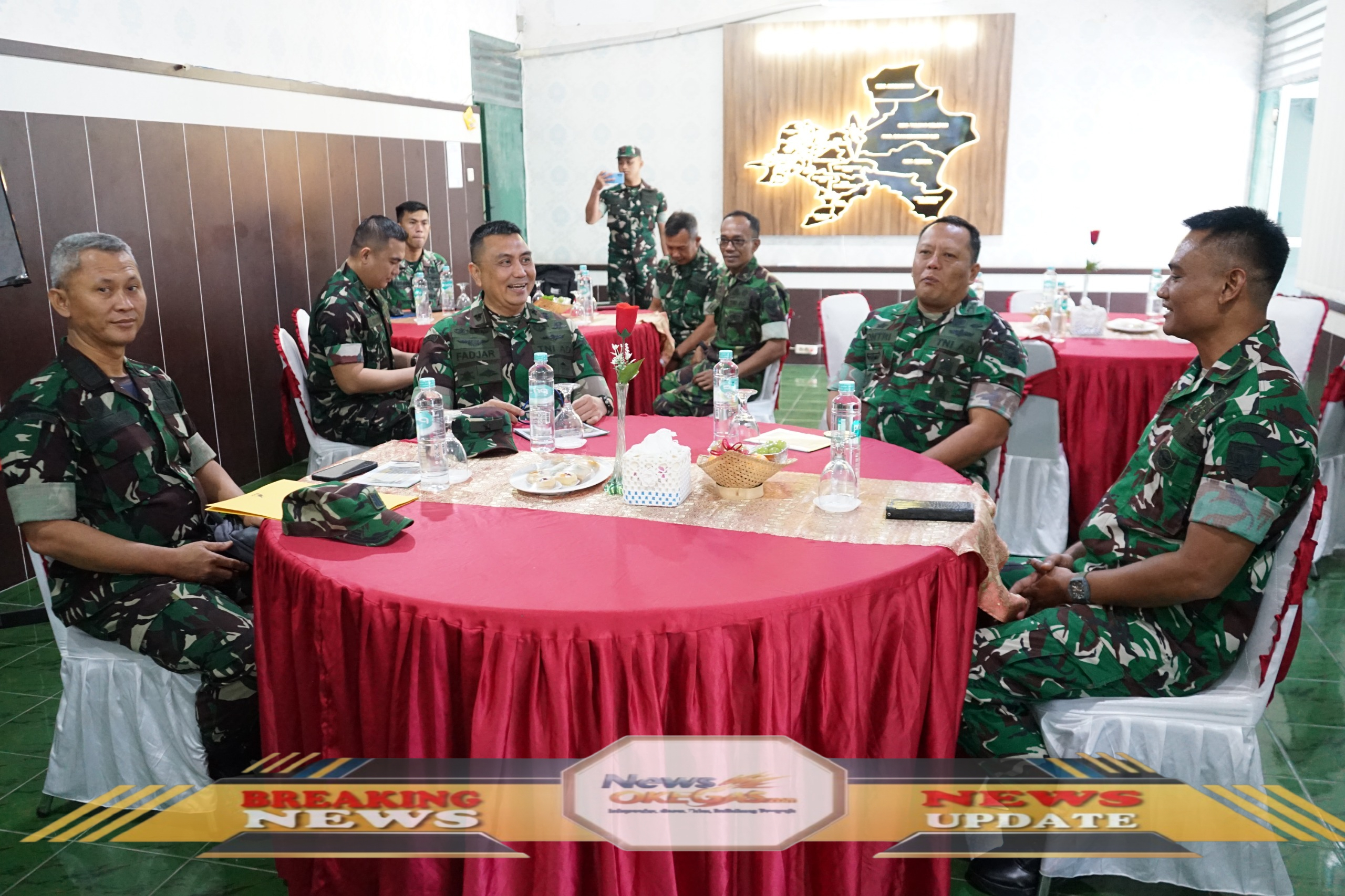 Dandim 0402/OKI-OI, Letkol Inf Yontri Bhakti, S.H., M.H., bersama Tim Pengawas dan Evaluasi (Wasev) Bakti TNI Tahun 2025, Brigjen TNI Fadjar Tjahjono, S.I.P., dalam suasana ramah tamah di Makodim 0402/OKI-OI pada Kamis, 25 September 2025./Lisin, www.newsokegas.com