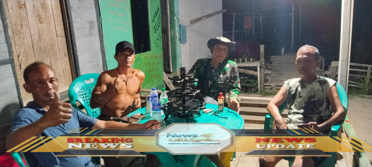 Sejak pukul 21.00 WIB, Peltu Tema Arifadi bersama warga menyisir setiap sudut Desa Gajah Mati, Kecamatan Sungai Menang, Kabupaten Ogan Komering Ilir.
