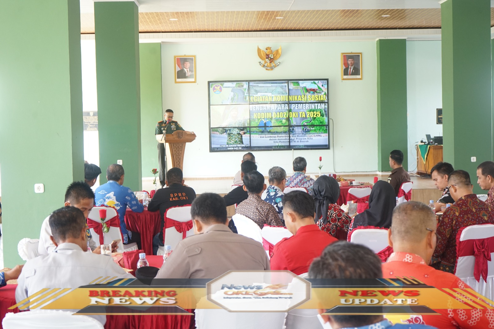 News Oke Gas (OKI) – Guna mempercepat pembangunan dan meningkatkan kesejahteraan masyarakat di Ogan Komering Ilir (OKI) dan Ogan Ilir (OI), Komando Distrik Militer (Kodim) 0402/OKI-OI menggagas kegiatan Komunikasi Sosial (Komsos) strategis dengan aparat pemerintah daerah.