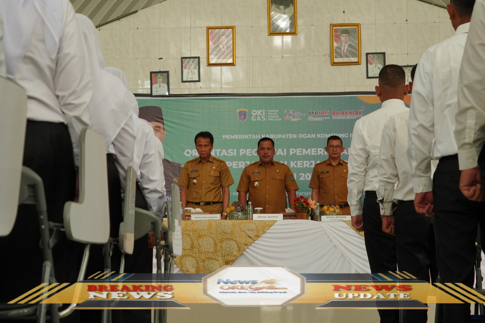 Wakil Bupati OKI, Supriyanto, SH., bersama Sekda OKI, Ir. H. Asmar Wijaya, dan Kepala BPSDM OKI menghadiri orientasi bagi 1.498 Pegawai Pemerintah dengan Perjanjian Kerja (PPPK) Kabupaten Ogan Komering Ilir (OKI) formasi tahun 2023 dan 2024 di Gedung Diklat Teluk Gelam, (03/11/2025)./Lisin, www.newsokegas.com