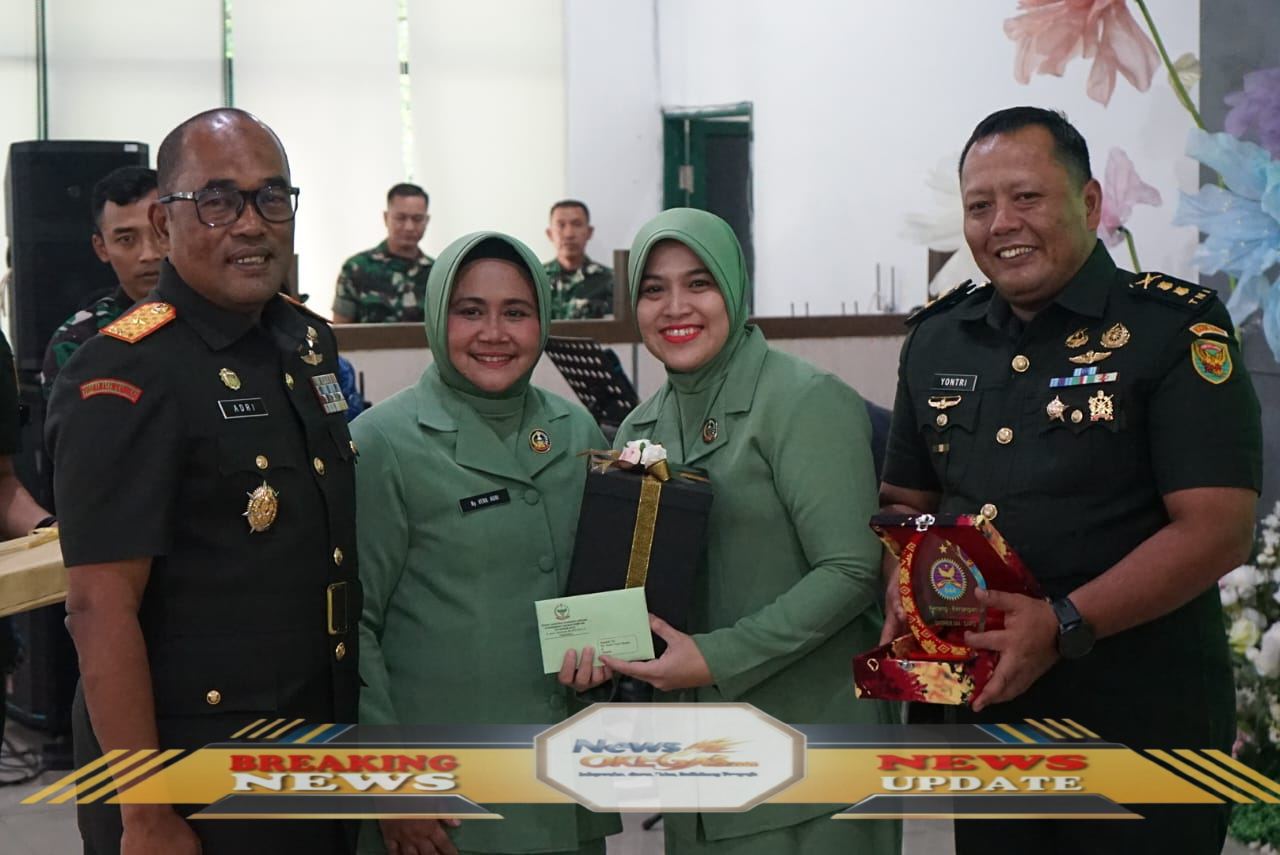 Momentum kebersamaan Danrem 044/Gapo, Brigjen TNI Adri Koesdyanto (kiri), bersama Letkol Inf Yontri Bhakti (kanan), beserta istri masing-masing, dalam acara serah terima jabatan Dandim 0402/OKI-OI di Aula Makorem 044/Gapo./Lisin, www.newsokegas.com