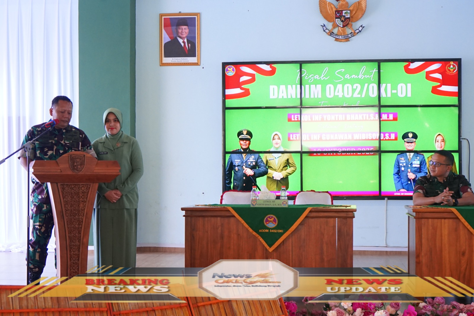 Tongkat kepemimpinan resmi beralih dari Letkol Inf Yontri Bhakti, S.H., M.H., kepada Letkol Inf Gunawan Wibisono, S.H., setelah serah terima jabatan yang dipimpin langsung oleh Komandan Korem 044/Gapo, Brigjen TNI Adry Koesdyanto.