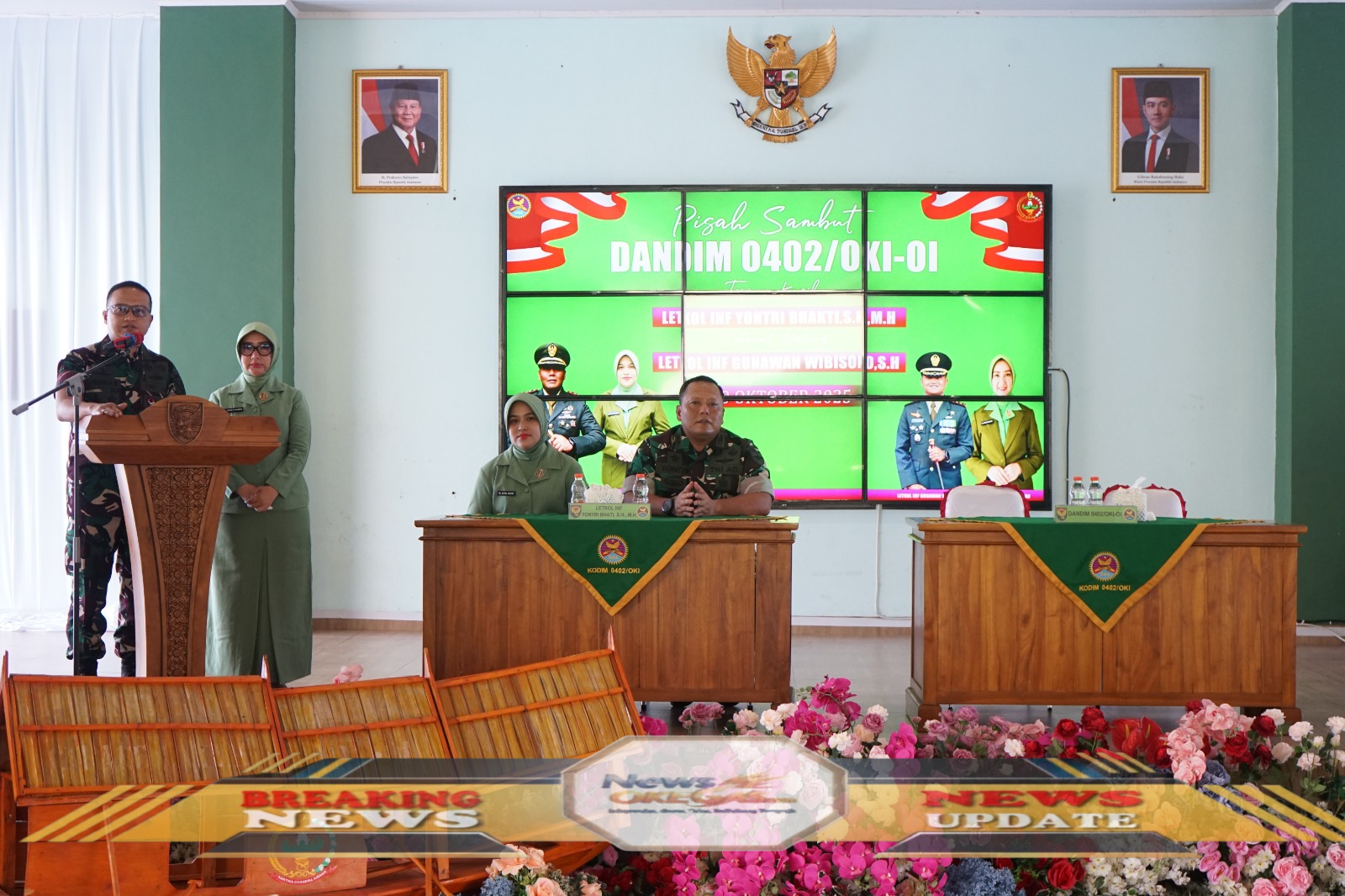 Acara lepas sambut ini turut dihadiri oleh Kasdim, Pabung, para perwira staf, Danramil jajaran, para prajurit, PNS Kodim 0402/OKI-OI, serta pengurus Persit KCK Cabang XXXVII Kodim 0402/OKI-OI.